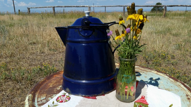 And this gorgeous cobalt blue cowboy coffee pot.