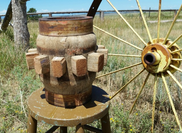 I have an eclectic mix of really old western items like this wood wagon wheel hub from the 1800’s.